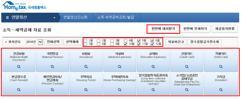 - 소득 및 세액 공제 자료 조회 : 의료비, 교육비, 기부금 등 다양한 공제 항목에 대한 자료를 조회할 수 있습니다.