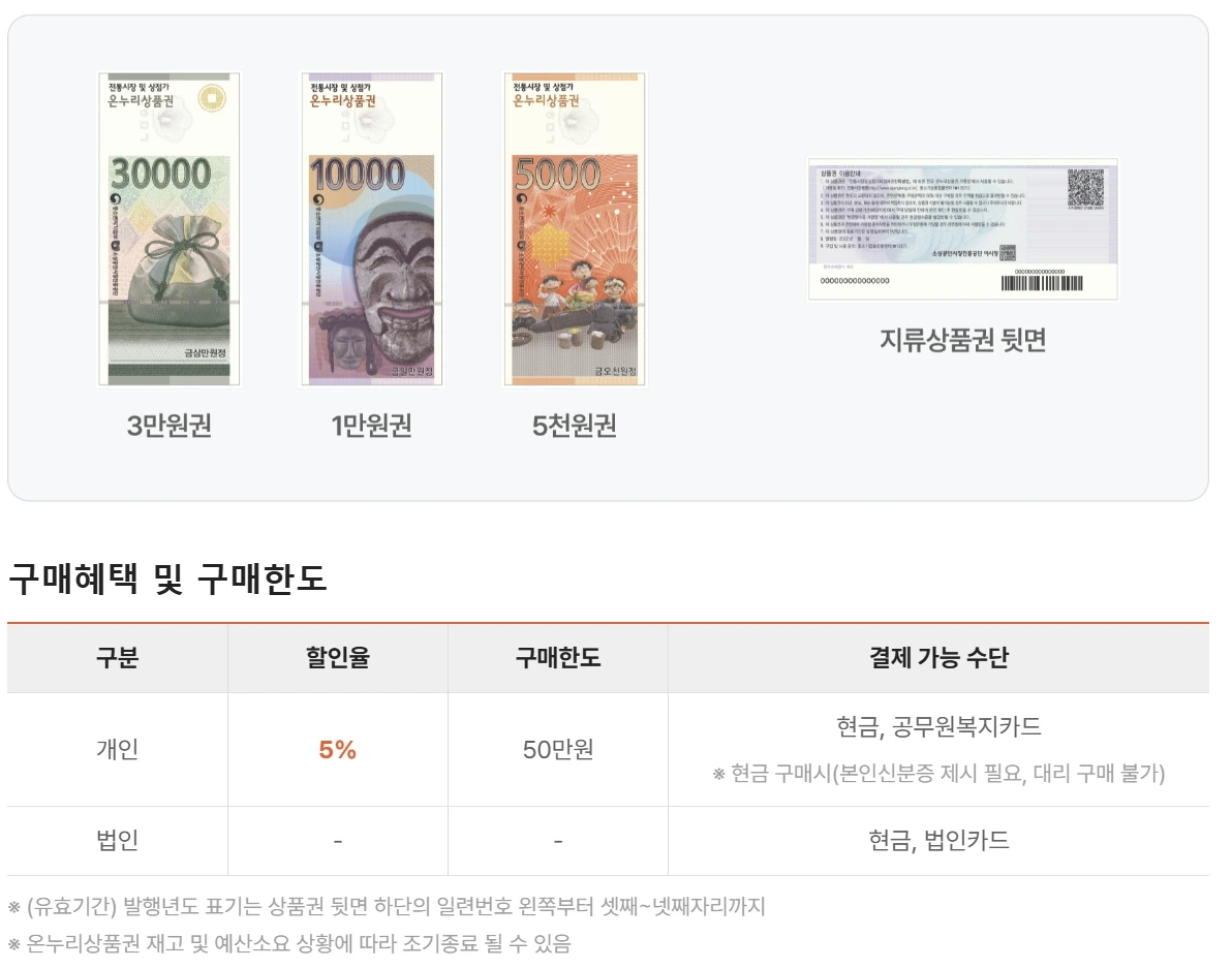 - 온누리상품권은 온라인 및 오프라인에서 구매할 수 있으며, 다양한 결제 수단이 지원됩니다.