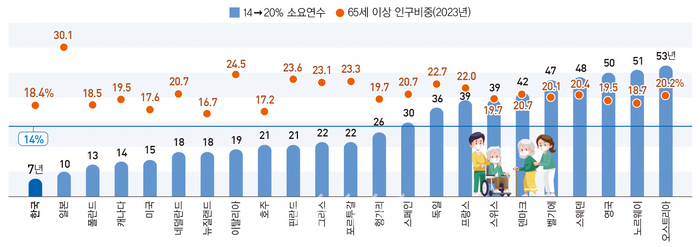 고령화 사회에 대한 다양한 통계 (국가별 비교)
